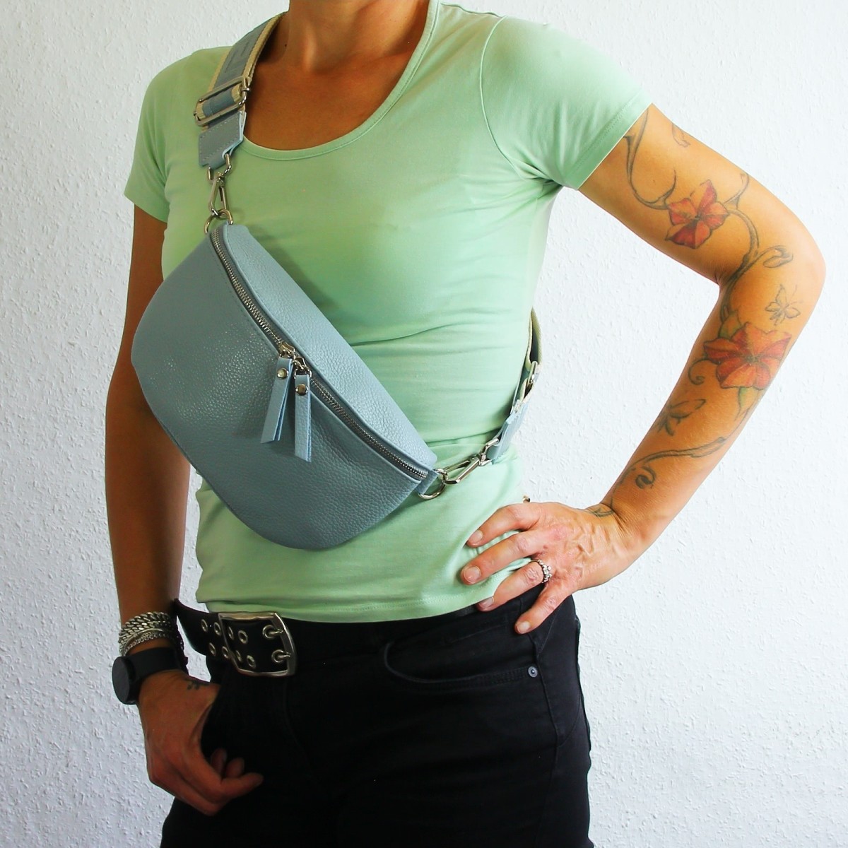Gürteltasche Leder hellblau Damen, Jugend Bauchtasche - Florence