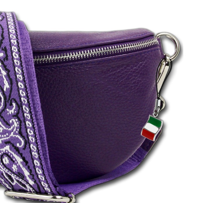Achtung: Der Gurt kommt immer in der passenden Farbe zum Leder und enthält auch Lederteile in Taschenfarbe. Das Band auf dem Bild ist nur ein Beispiel und kann variieren! Im Lieferumfang enthalten ist ein kleiner Italienflaggen-Anhänger, der am Produkt oder auch als Handyanhänger getragen werden kann.- besondere Eigenschaften
