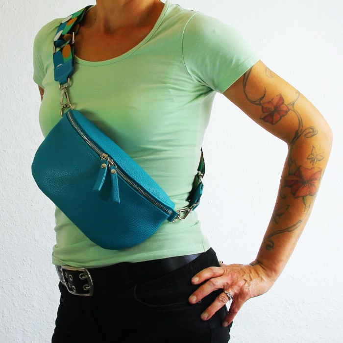 - Kurzbeschreibung: Damen Gürteltasche in türkis aus Echt-Leder