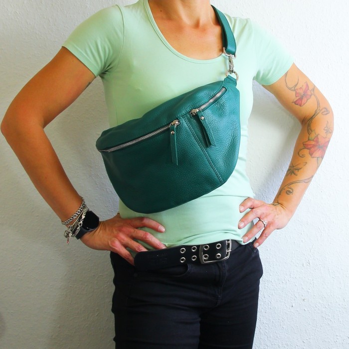 - Kurzbeschreibung: Sehr große Gürteltasche in hellgrün aus Echt-Leder Damen