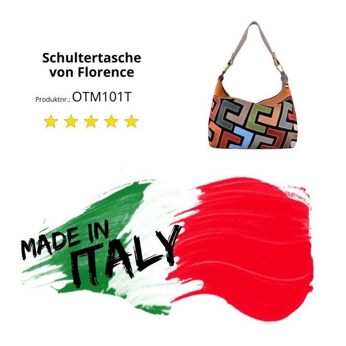 Trendige Schultertasche mit vielen praktischen Fächern aus hochwertigem, strapazierfähigem Material als idealer Begleiter für Beruf und Freizeit die auch als Crossover Umhängetasche getragen werden kann. Im Lieferumfang enthalten ist ein kleiner Italien-Anhänger, der am Produkt oder auch als Handyanhänger getragen werden kann.