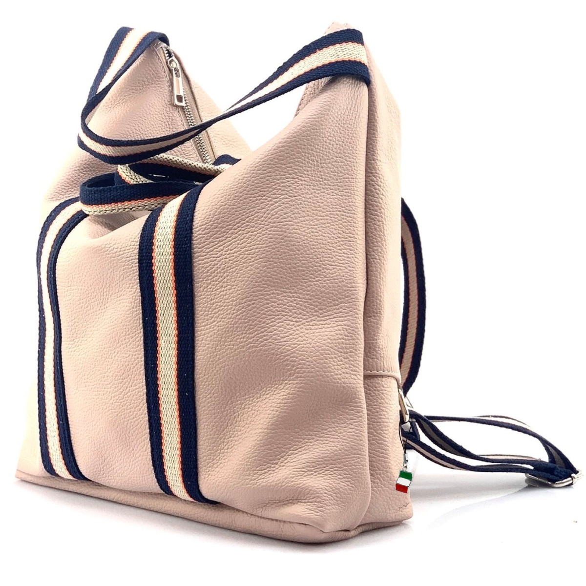 Moderne Damenrucksack aus echtem, weichem Kalbsleder - Made in Italy. Dieser Rucksack lässt sich auch als Schultertasche oder an den 2 Henkeln lässig in der Hand tragen. Der Cityrucksack ist unerlässlich im Businessalltag und in der Freizeit. Er hat Platz für alles Wesentliche, es passt auch ein Laptop rein. Im Lieferumfang enthalten ist ein kleiner Italien-Anhänger, der am Produkt oder auch als Handyanhänger getragen werden kann.- besondere Eigenschaften