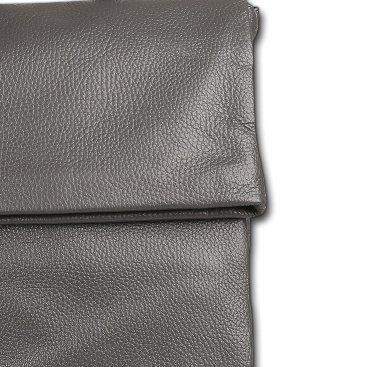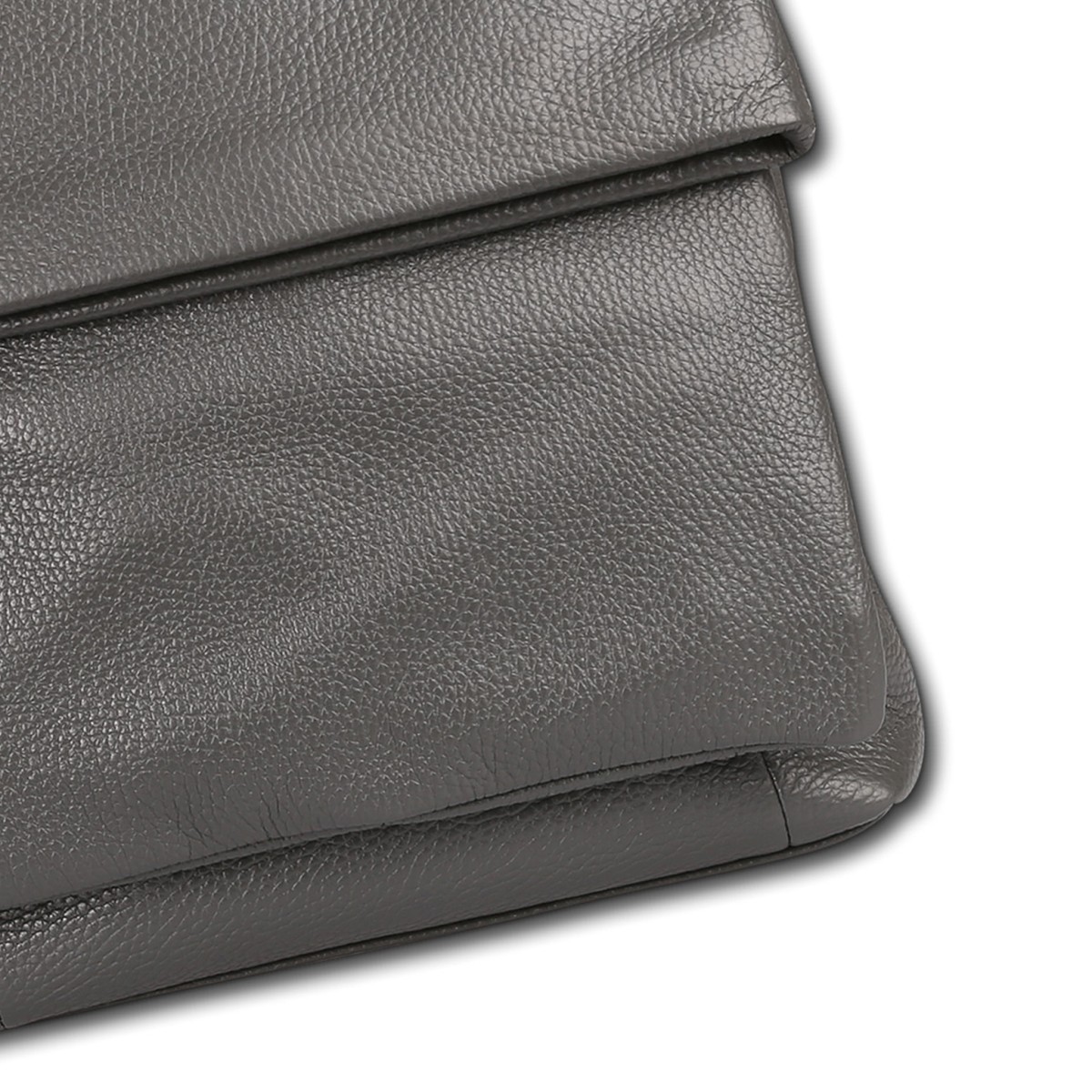 - Kurzbeschreibung: Cityrucksack in grau mit Reißverschluss/Umschlagklappe aus Echt-Leder
