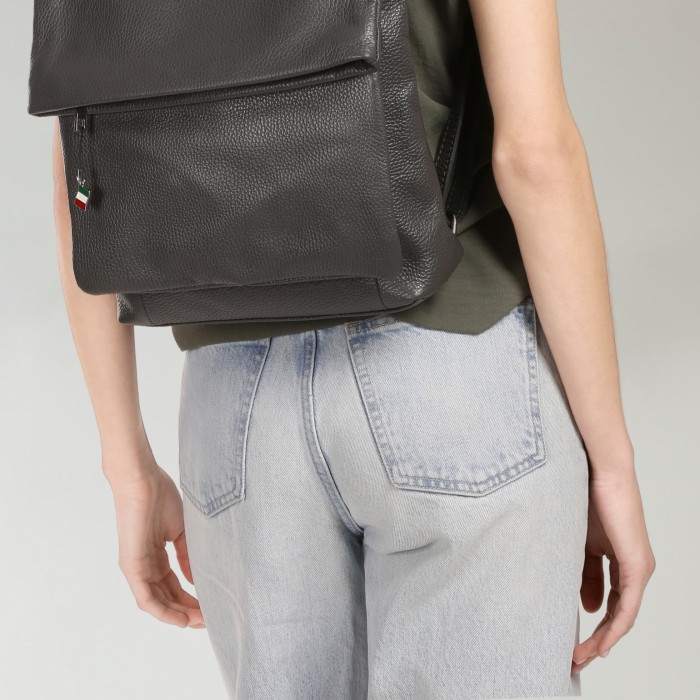 Moderner Damenrucksack aus echtem, weichem Kalbsleder - Made in Italy. Dieser funktionelle Rucksack hat Platz für alles Wesentliche und ist ideal für die Stadt und Freizeit geeignet. In den vielen Taschen kann man seine Utensilien gut und übersichtlich verstauen. Das Design des Multifunktions-Rucksack ist edel und funktionell. Im Lieferumfang enthalten ist ein kleiner Italien-Anhänger, der am Produkt oder auch als Handyanhänger getragen werden kann.- besondere Eigenschaften