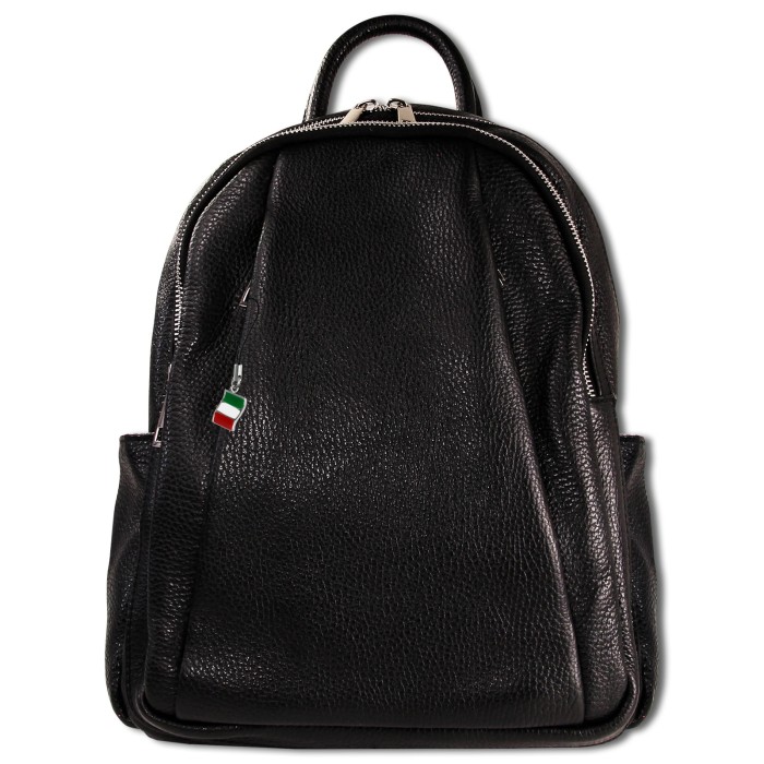 Moderner Damenrucksack aus echtem, weichem Kalbsleder - Made in Italy. Dieser stilvolle Rucksack hat Platz für alles Wesentliche und ist ideal für die Stadt und Freizeit geeignet. In den vielen Taschen kann man seine Utensilien gut und übersichtlich verstauen. Das Design ist sportlich und funktionell. Im Lieferumfang enthalten ist ein kleiner Italien-Anhänger, der am Produkt oder auch als Handyanhänger getragen werden kann.- besondere Eigenschaften