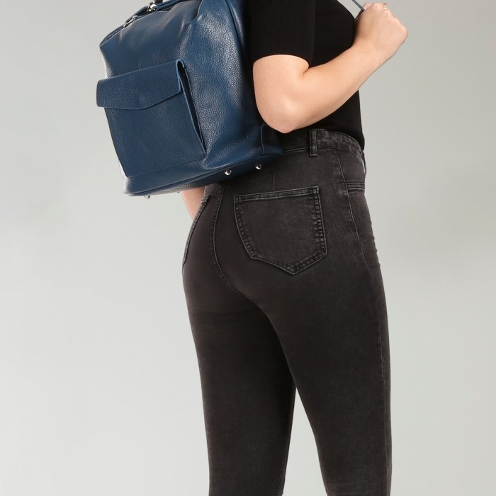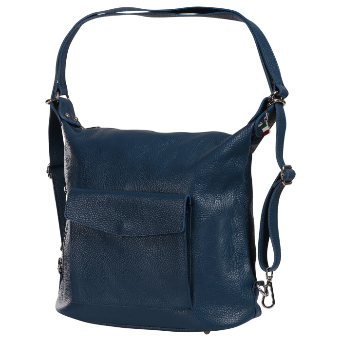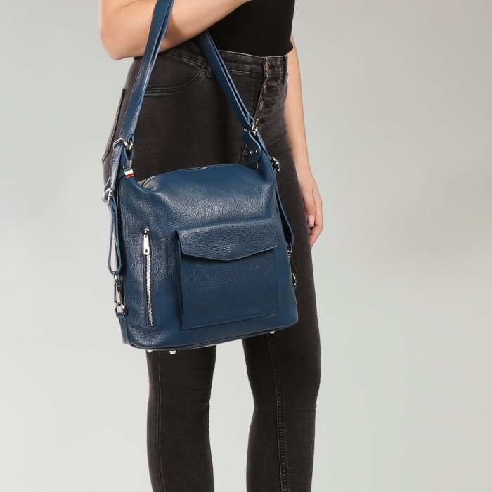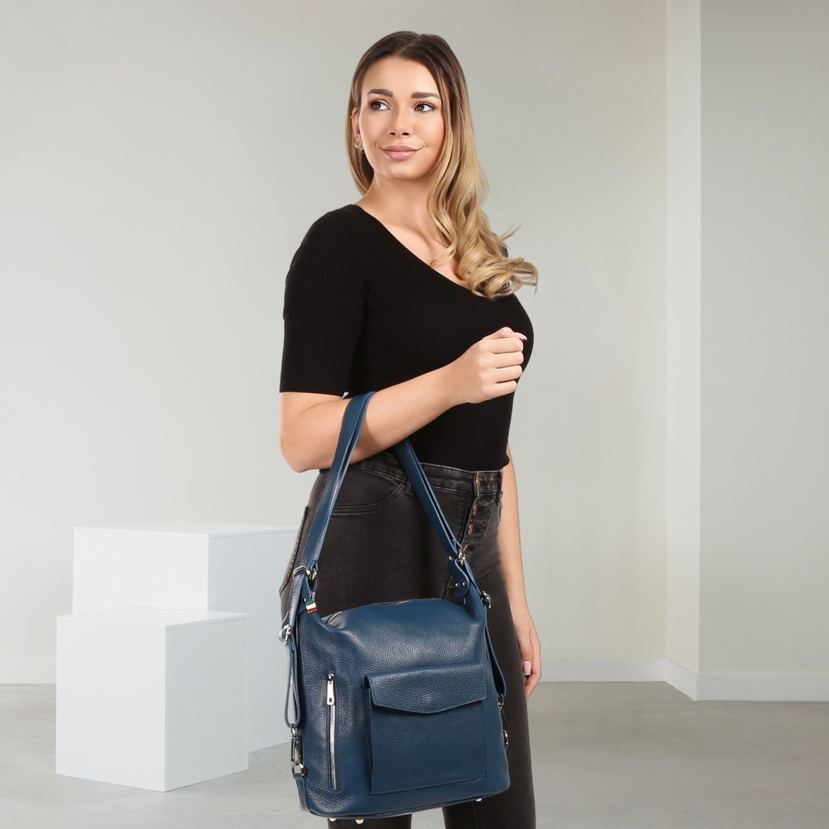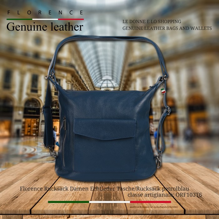 Schultertasche, Cityrucksack Echt-Leder Damen petrolblau Florence