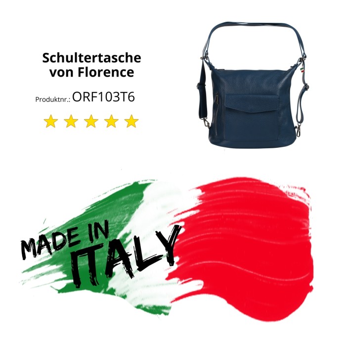 Eine trendige Schultertasche bzw. Cityrucksack aus echtem, weichem Kalbsleder - Made in Italy. Mit wenigen Handgriffen lässt sich die Tasche von einer klassischen Schultertasche in einen komfortablen Rucksack verwandeln, ideal für Beruf, Freizeit oder Reisen. Das Design ist edel und funktionell. Im Lieferumfang enthalten ist ein kleiner Italien-Anhänger, der am Produkt oder auch als Handyanhänger getragen werden kann.- besondere Eigenschaften