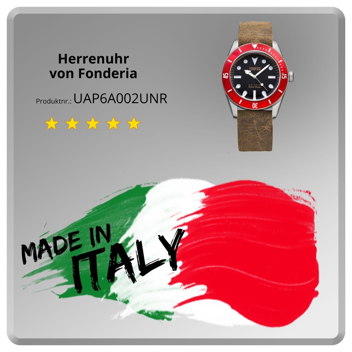 - Schlüsselworte: Herrenuhren, Analoguhren, Quarzuhren, Leder, Fonderia, Armbanduhren