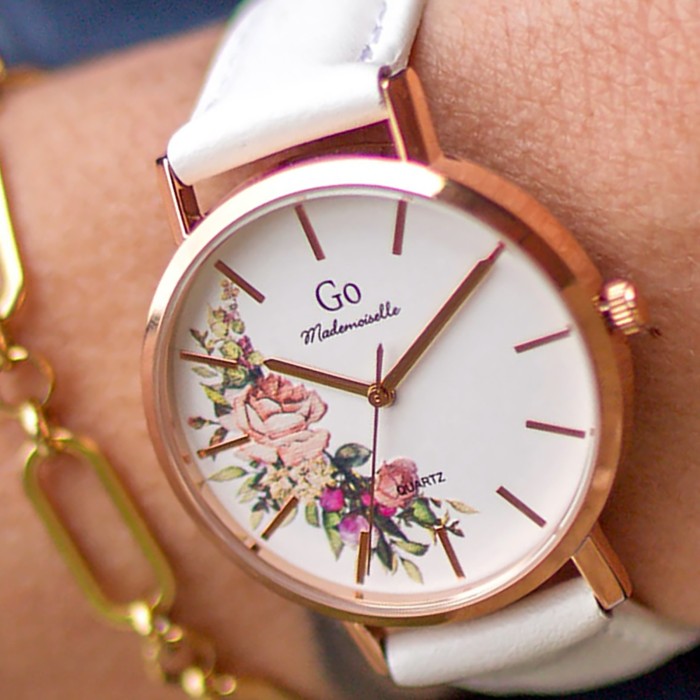 Entdecken Sie die Girl Only GO Uhr für Damen die zeitloses Design mit zuverlässiger Technik verbindet. Sie ist ausgestattet mit einem präzisen Quarzwerk und einem widerstandsfähigen Edelstahl-Gehäuse in rosegold. Der komfortable Dornschließe garantiert sicheren Halt und angenehmes Tragen. Besonders ins Auge fällt das Zifferblatt in weiß das der Uhr eine moderne frische Note verleiht. Die runde Gehäuseform macht die Uhr zu einem eleganten aber dennoch markanten Accessoire für jeden Anlass. Zusätzlich besticht die Uhr durch herausragende Besonderheiten: Blumen Motiv.- besondere Eigenschaften