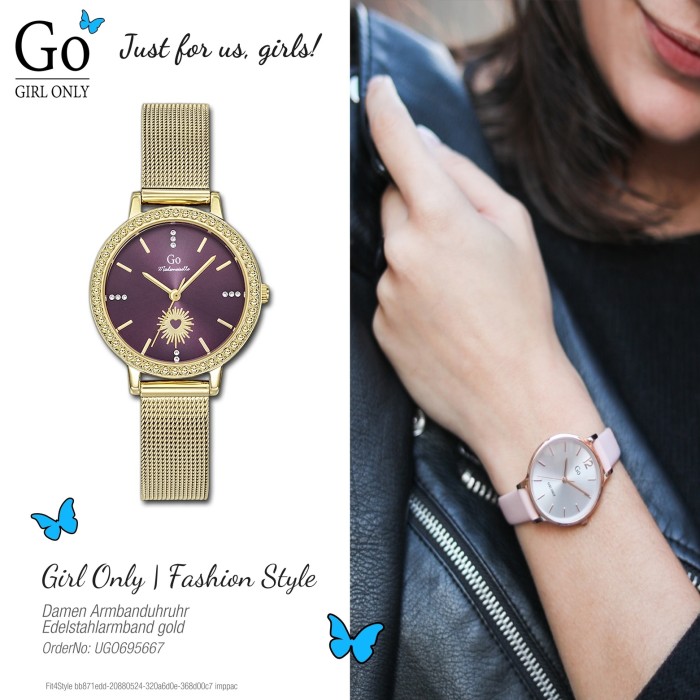 Der Schmetterling, der die Marke Girl Only symbolisiert, verkörpert das Ziel der Uhrenfirma - harmonisch und schön. Feminine und erschwingliche Uhren speziell für junge Damen, die sowohl als Modeaccessoires als auch als Zeitmesser konzipiert sind, aber auch einen unverwechselbaren Charme und Originalität haben.
