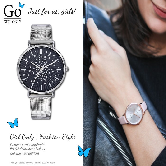 Der Schmetterling, der die Marke Girl Only symbolisiert, verkörpert das Ziel der Uhrenfirma - harmonisch und schön. Feminine und erschwingliche Uhren speziell für junge Damen, die sowohl als Modeaccessoires als auch als Zeitmesser konzipiert sind, aber auch einen unverwechselbaren Charme und Originalität haben.