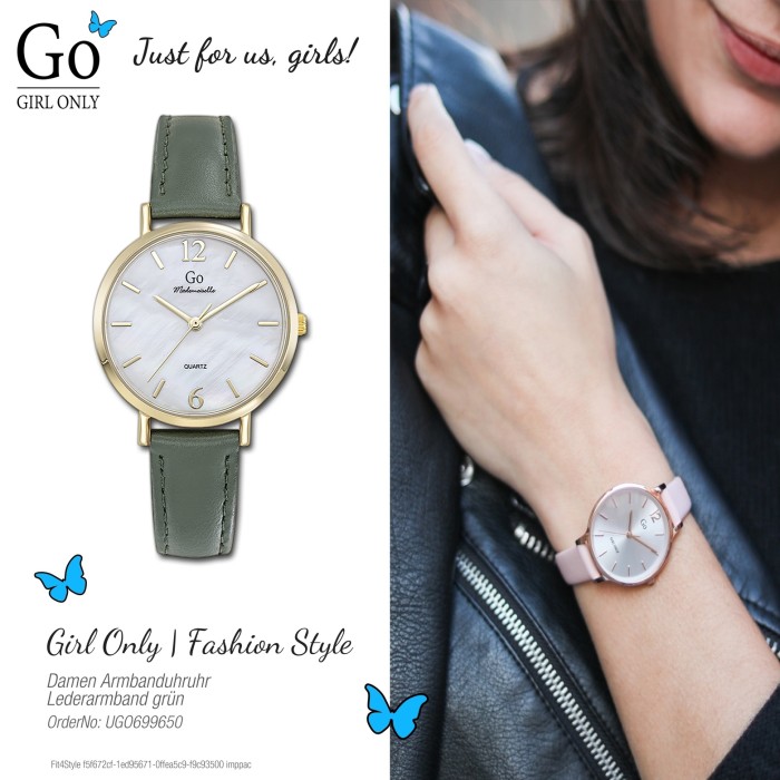 Der Schmetterling, der die Marke Girl Only symbolisiert, verkörpert das Ziel der Uhrenfirma - harmonisch und schön. Feminine und erschwingliche Uhren speziell für junge Damen, die sowohl als Modeaccessoires als auch als Zeitmesser konzipiert sind, aber auch einen unverwechselbaren Charme und Originalität haben.