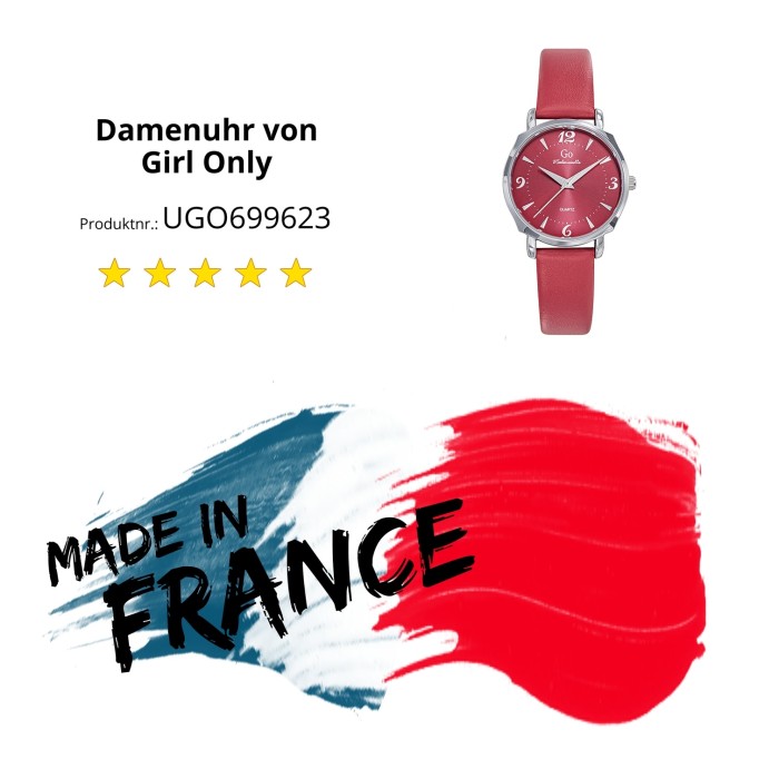 Diese Fashion Uhr für Damen aus der exklusiven Girl Only Mademoiselle-Kollektion verfügt über ein hochwertiges Leder-Armband in rot. Das analoge Quarzwerk und die Wasserdichte bis 3 bar machen diese Armbanduhr zu einem besonders zuverlässigen Begleiter.- besondere Eigenschaften
