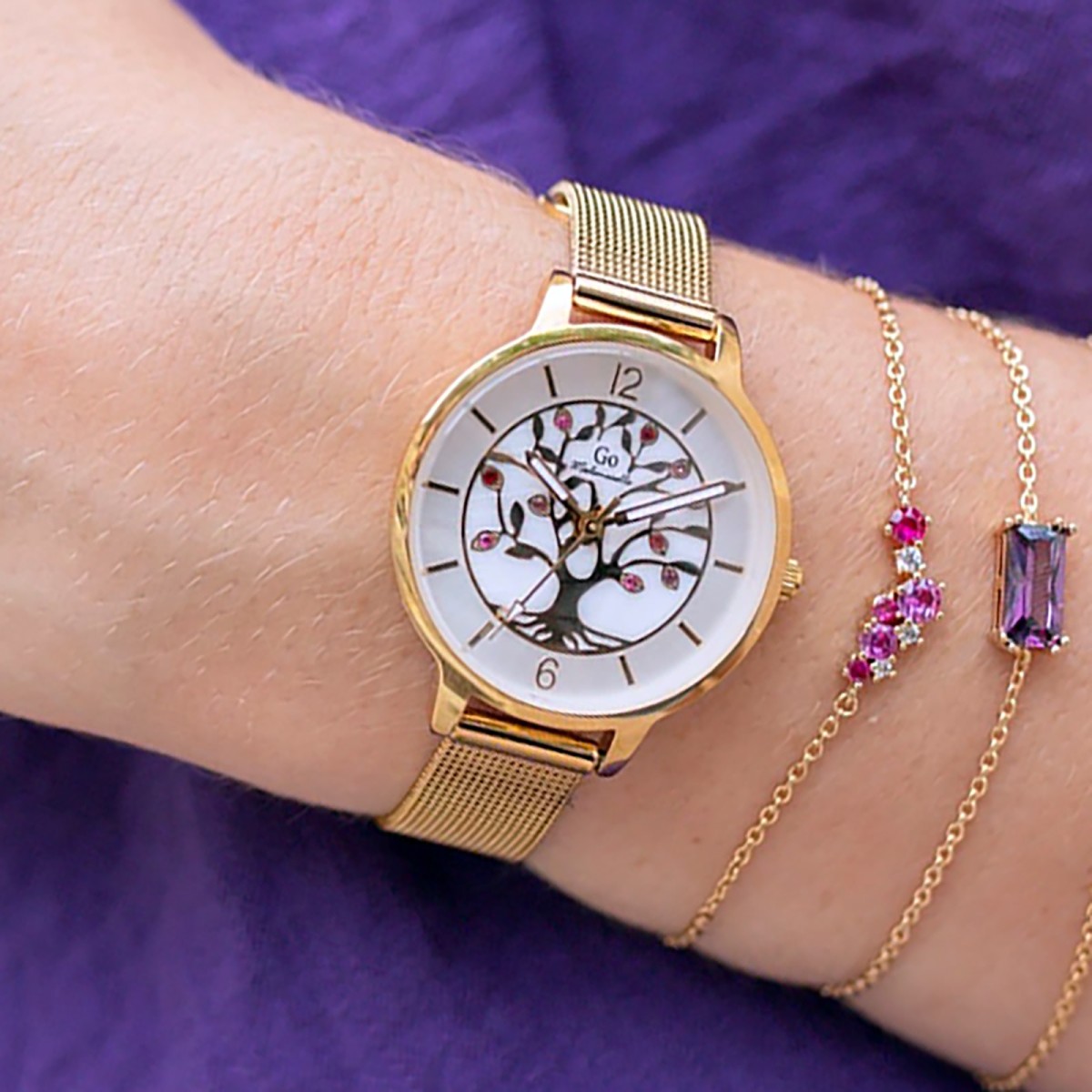 - Besonderheiten: Mesharmband, Mother of Pearl (MOP) Ziffernblatt, Mit Lebensbaum-Motiv