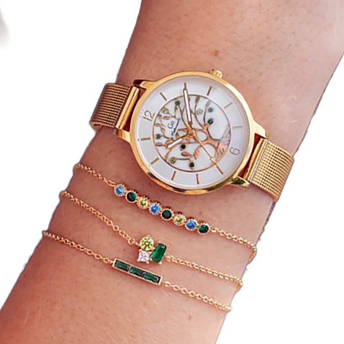 - Besonderheiten: Mesharmband, Mother of Pearl (MOP) Ziffernblatt, Mit Lebensbaum-Motiv