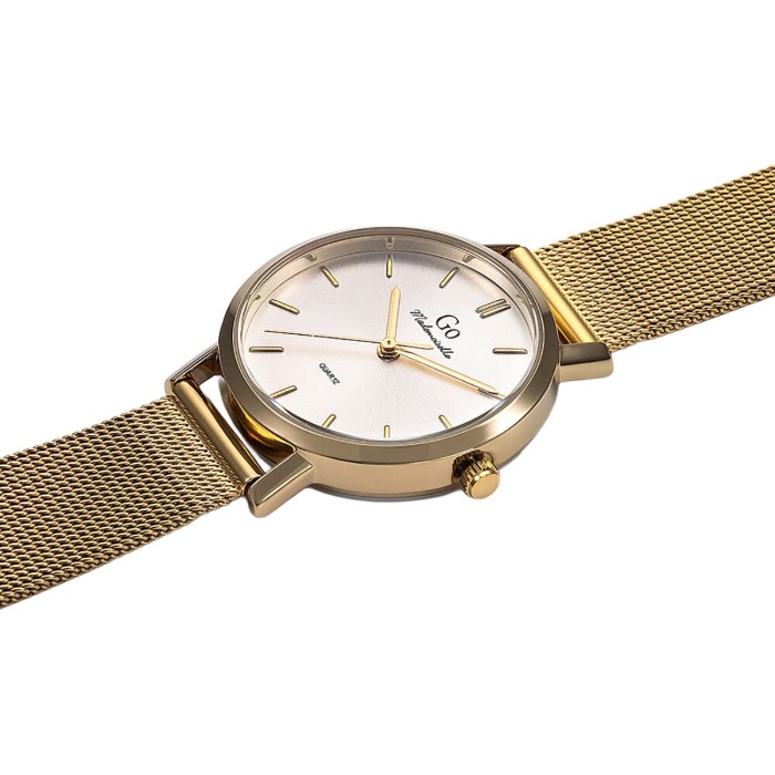 Entdecken Sie die Girl Only Mademoiselle Uhr für Damen die zeitloses Design mit zuverlässiger Technik verbindet. Sie ist ausgestattet mit einem präzisen Quarzwerk und einem widerstandsfähigen Metall-Gehäuse in gold. Der komfortable Schiebeverschluss garantiert sicheren Halt und angenehmes Tragen. Besonders ins Auge fällt das Zifferblatt in silber das der Uhr eine moderne frische Note verleiht. Die Runde Gehäuseform macht die Uhr zu einem eleganten aber dennoch markanten Accessoire für jeden Anlass. Zusätzlich besticht die Uhr durch herausragende Besonderheiten: Mesharmband.- besondere Eigenschaften