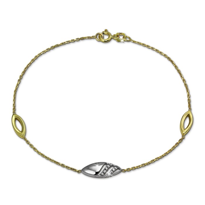 Ein stylisches 8 Karat Gold-Armband Glamour mit kleinen weißen Zirkonias besetzt. Die Länge beträgt ca. 18,5cm und der Verschluss ist ein Federring. Das 333er Bicolor-Gold Armband ist Teil der GoldDream Echtschmuck Kollektion.