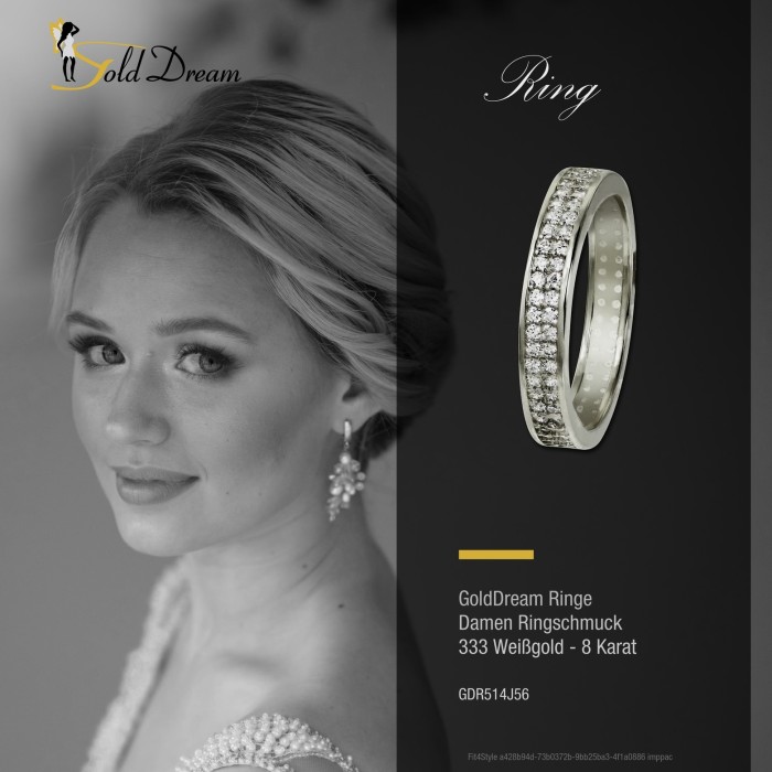 - Kurzbeschreibung: GoldDream Goldring zweireihig Zirkonia 333er Weißgold