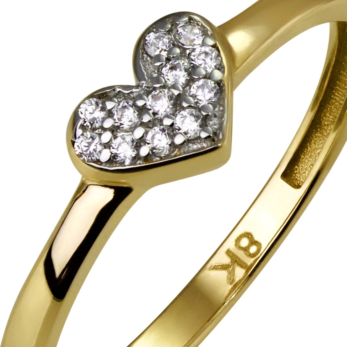 Ein edler Goldring Herz Zirkonia weiß aus unserer einzigartigen GoldDream Echtschmuck Kollektion. Der Zirkonia-Ring ist aus anlaufgeschütztem 333er Gelbgold (8-Karat) und das Herz ist verziert mit kleinen weißen Zirkonias. Der Ring hat eine Größe von 60mm Umfang und einen Innendurchmesser von 19,1mm. Es gibt den Goldring auch in den Größen 54, 56 und 58.