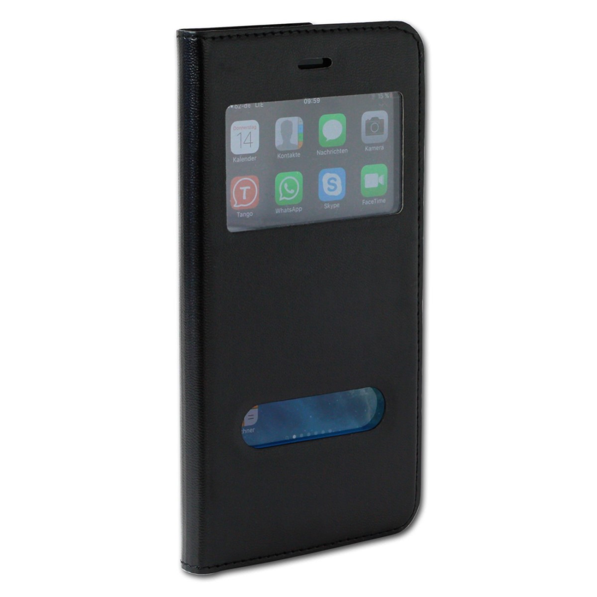 Handytasche, Schutzhülle aus Kunstleder im Bookstyle mit Infofenster, Standfunktion und integrierter PU Hülle für iPhone 6 (S) Plus.- besondere Eigenschaften