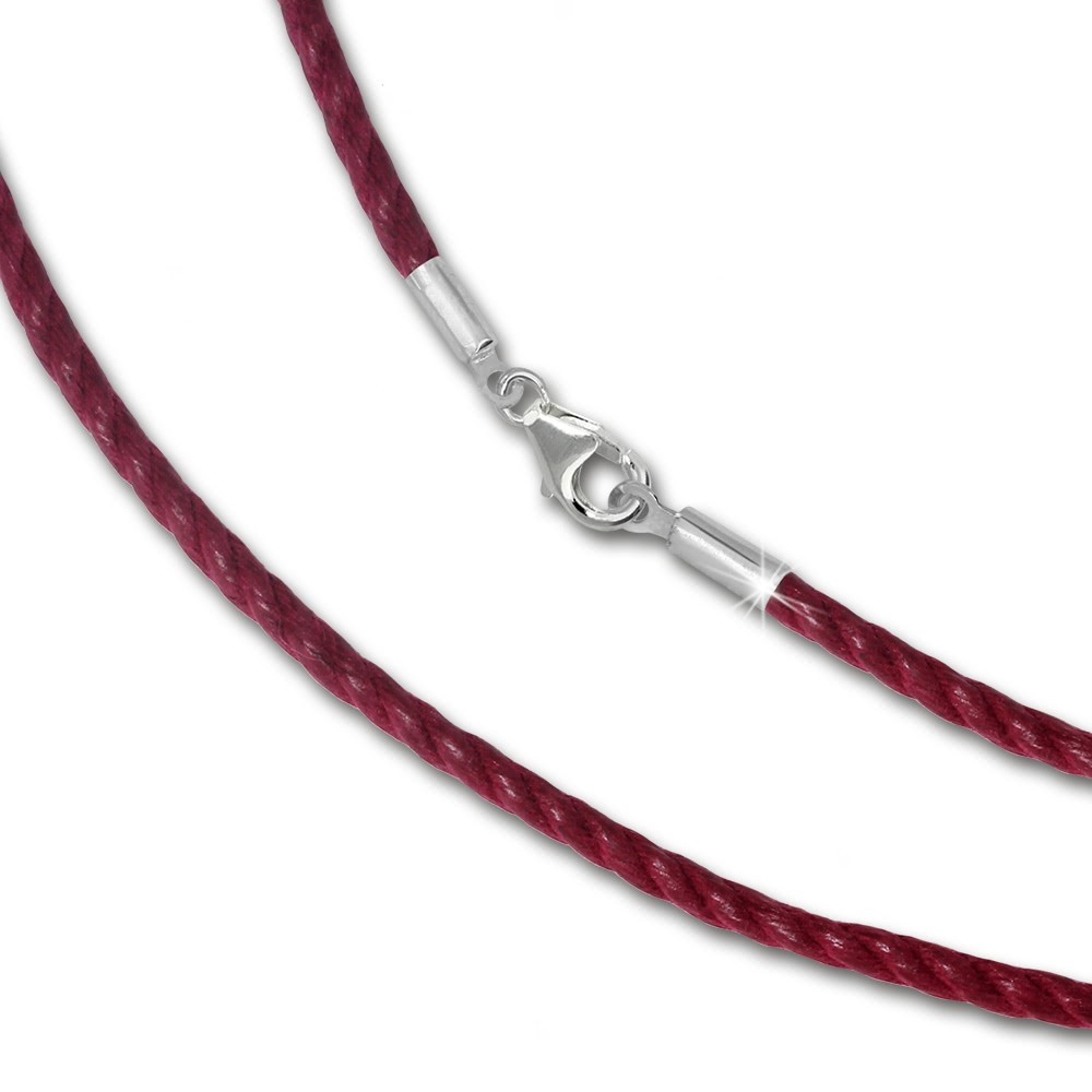 Ein Textil Armband Kordel in der Farbe bordeaux mit Karabiner Verschluss, Sterling Silber 925er. Die Länge des Bandes ist 19cm einschl. Verschluss.