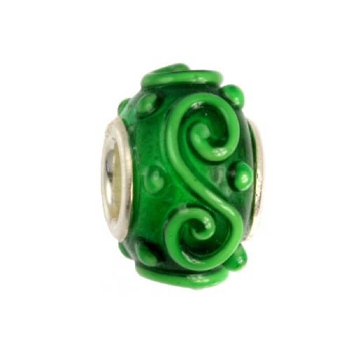 ..Slider Serie: - Spirit -Ein Armband Modul - Glas grüne Kringel - 925 Sterling Silber, original IMPPAC European Bead! Das Modul ist ein Spacer (Slidemodul) ohne Gewinde.