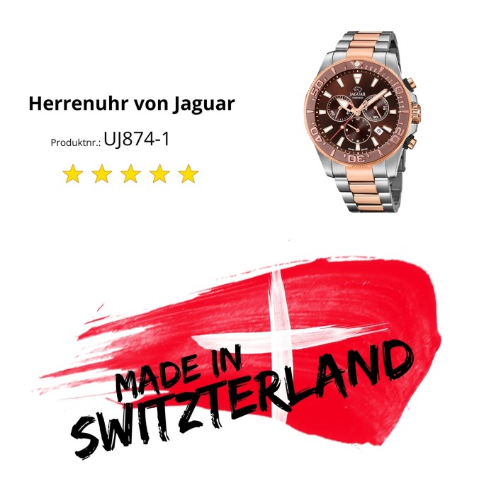 JAGUAR -Swiss Made- Seit über 70 Jahren produziert Jaguar exklusive Uhren von höchster Qualität. Diese zeichnen sich besonders durch ihr einzigartiges Design und höchste Präzision aus. Vor Allem Uhrenliebhaber erfreuen sich über die Schmuckstücke aus der Schweizer Uhrenmanufaktur.