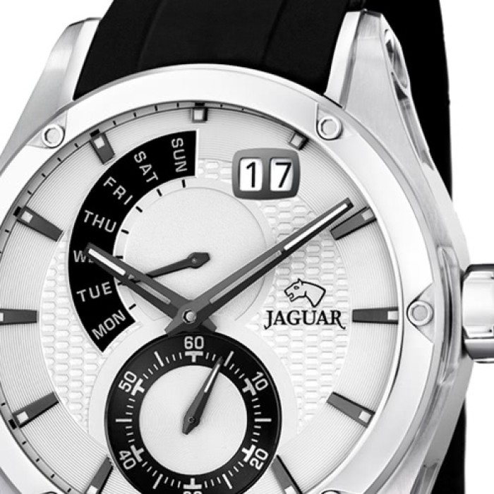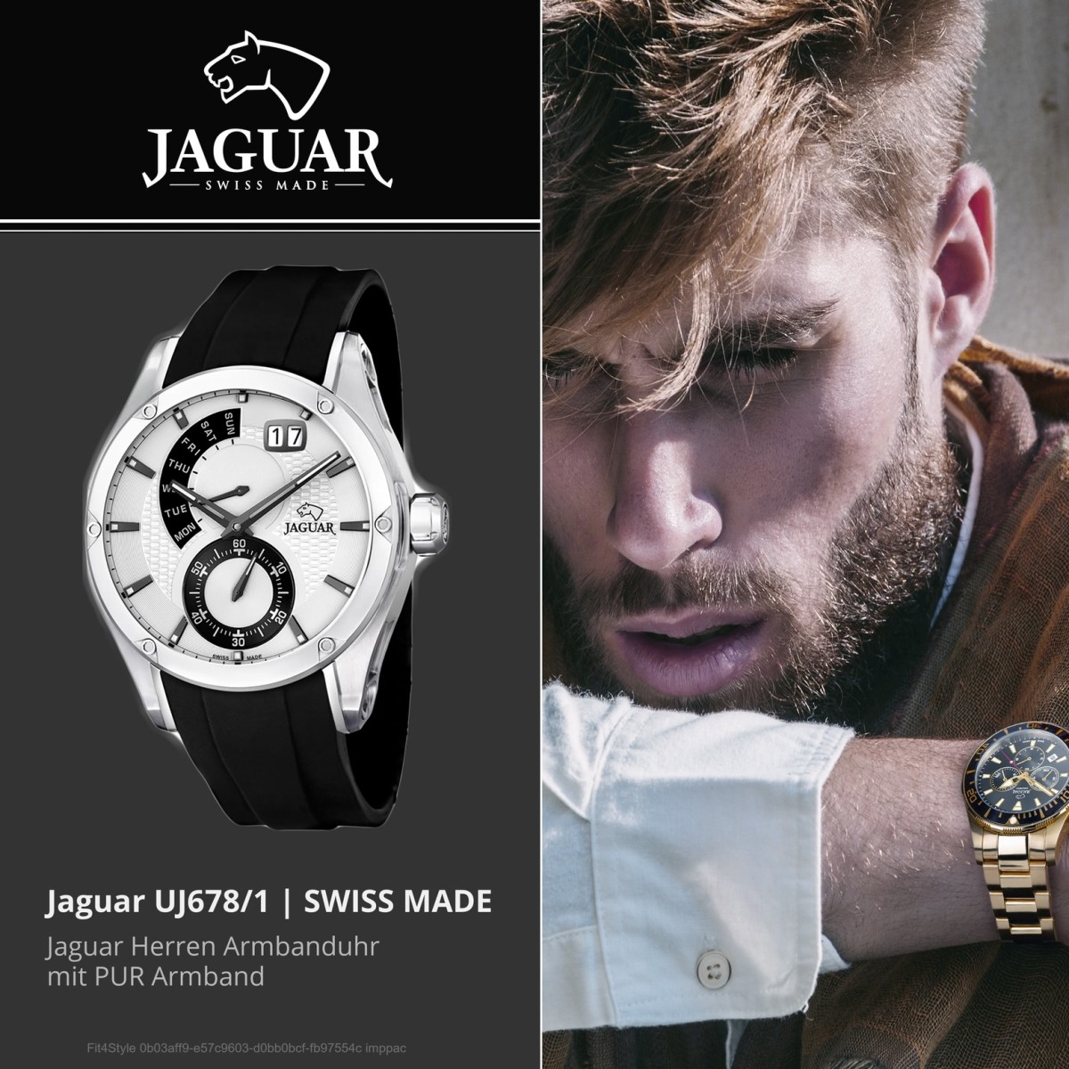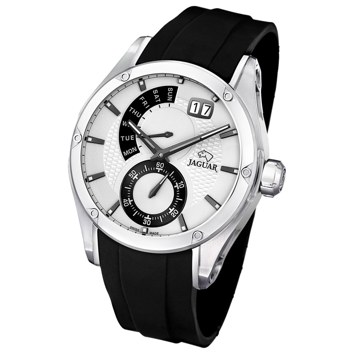 Diese Fashion Uhr für Herren, ausgestattet mit einem hochwertigen schwarzen PU-Armband, kommt aus der exklusiven Jaguar Kollektion Special Edition. Die Analoguhr zeichnet sich vor Allem durch ein höchst präzises Quarzwerk aus und ist bis 10 bar wasserdicht.- besondere Eigenschaften