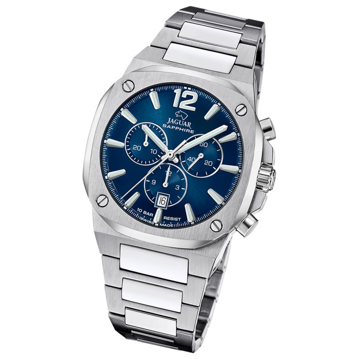 Diese einzigartige Uhr für Herren aus der aktuellen Jaguar RC. Kollektion garantiert hohen Tragekomfort durch das hochwertige Edelstahl-Armband in silber. Der Chronograph und präzisem Armbanduhr ist ein zuverlässiger Begleiter in Alltag und Freizeit.- besondere Eigenschaften