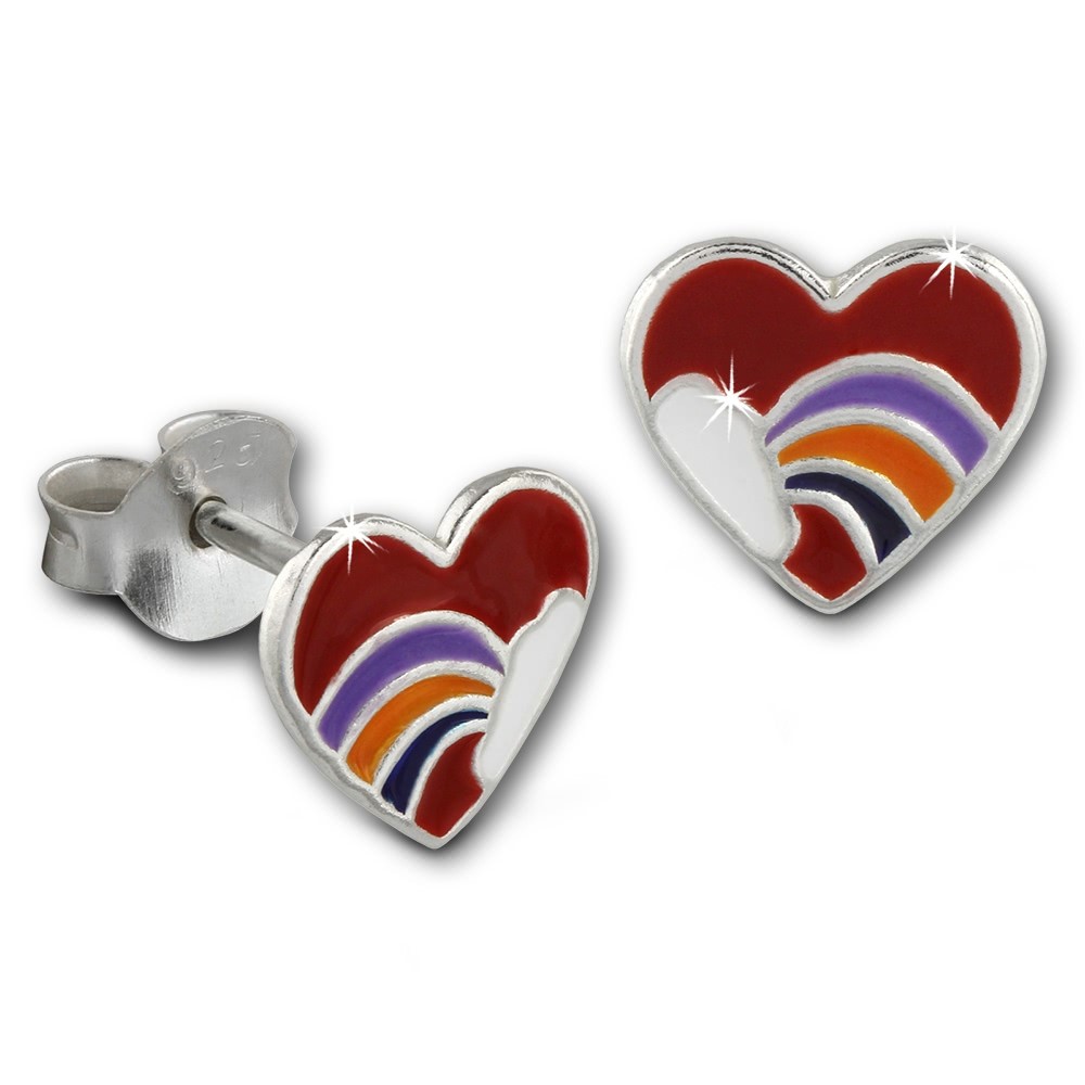 Teenie-Weenie Kinder Ohrstecker Herz rot mit Regenbogen und Emaille aus unserer Kinderschmuck Kollektion aus anlaufgeschütztem 925 Sterling Silber.