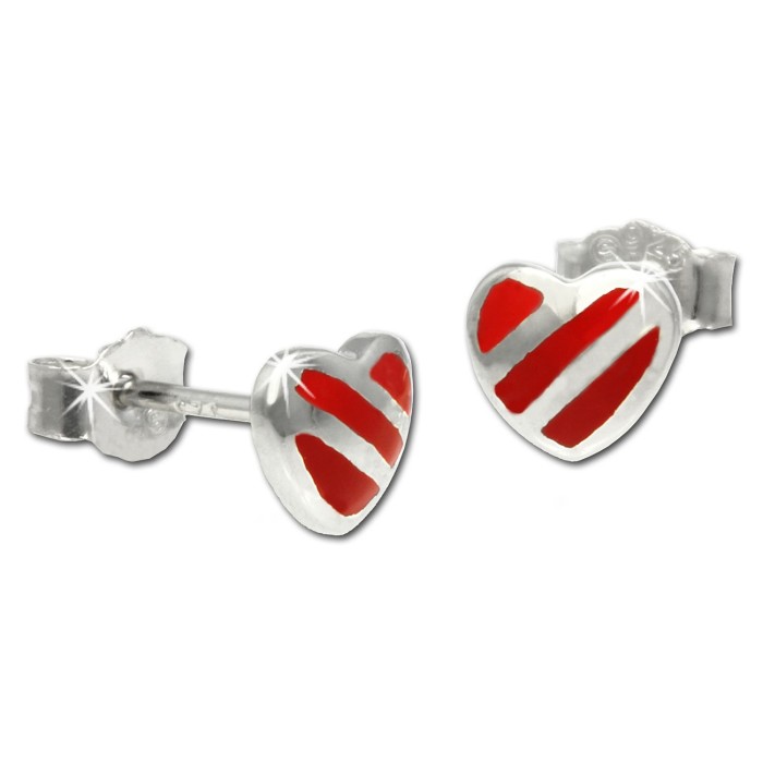 - Kurzbeschreibung: Teenie-Weenie Kinder Ohrstecker rot-silber Herz 925 Silber
