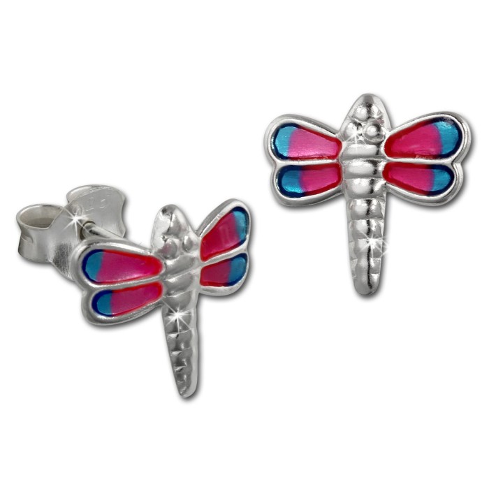 Teenie-Weenie Kinder Ohrstecker Libelle pink/blau aus unserer Kinderschmuck Kollektion aus anlaufgeschütztem 925 Sterling Silber.