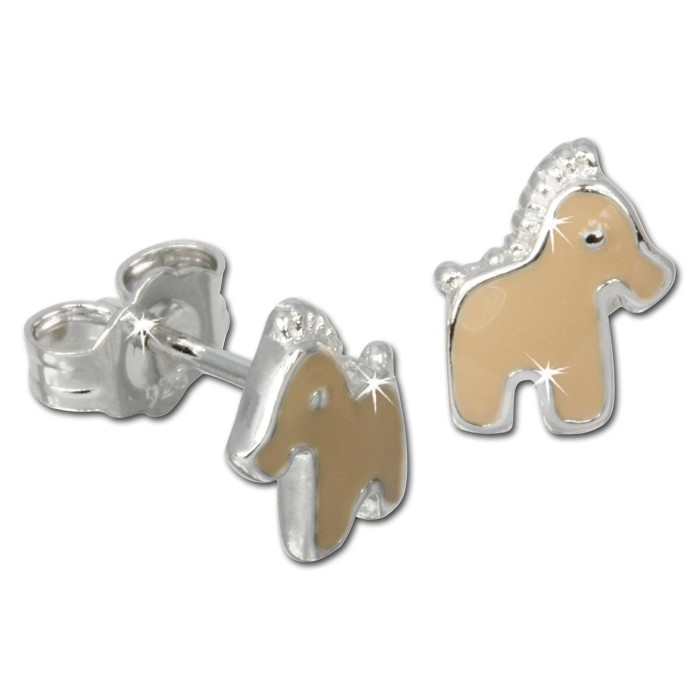 Teenie-Weenie Kinder Ohrstecker Pferdchen hellbraun aus unserer Kinderschmuck Kollektion aus anlaufgeschütztem 925 Sterling Silber.