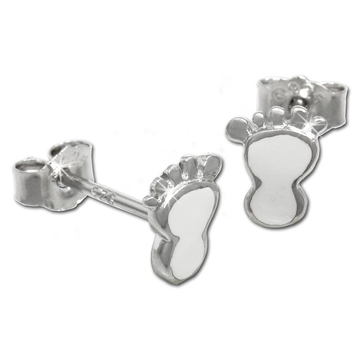 Teenie-Weenie Kinder Ohrstecker Tapsen weiss aus unserer Teenie-Weenie Kinderschmuck Kollektion aus anlaufgeschütztem 925 Sterling Silber.