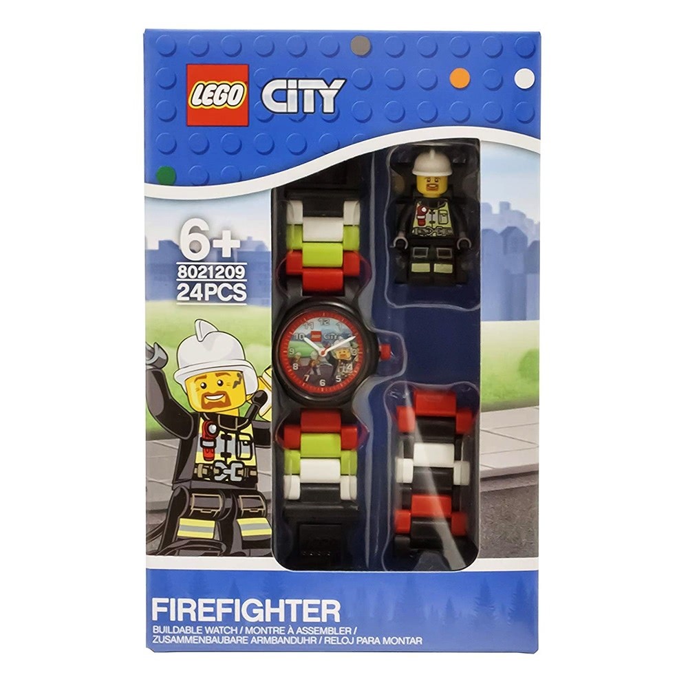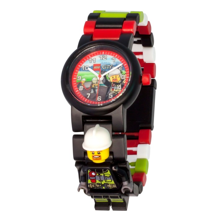 - Besonderheiten: inkl. Transport-Säckchen, tauschbare Glieder, LEGO City Feuerwehrmann Figur auf Armband und Ziffernblatt