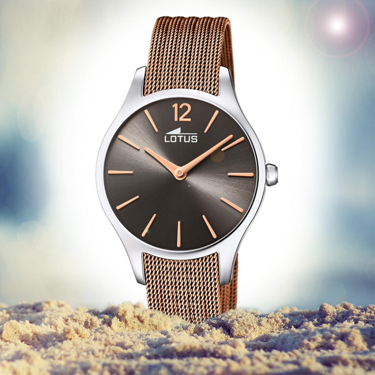 Diese elegante Uhr für Damen aus der exklusiven Lotus Bliss-Kollektion verfügt über ein hochwertiges Edelstahl-Armband in braun. Das analoge Quarzwerk und die Wasserdichte bis 5 bar machen diese Armbanduhr zu einem besonders zuverlässigen Begleiter.- Besonderheiten: