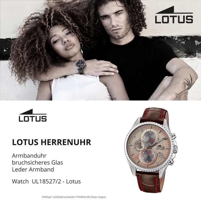Lotus Uhren haben trendige, kompromisslos ausgesuchte Qualität und sind trotzdem zu einem erschwinglichen Preis erhältlich. Die Lotus Uhren Kollektionen sind eine Mischung aus hochwertig, sportlich und glamourös verarbeiteten Uhren. Sie sind damit die perfekten und geschmackvollen Begleiter für das tägliche oder extravagante Outfit.