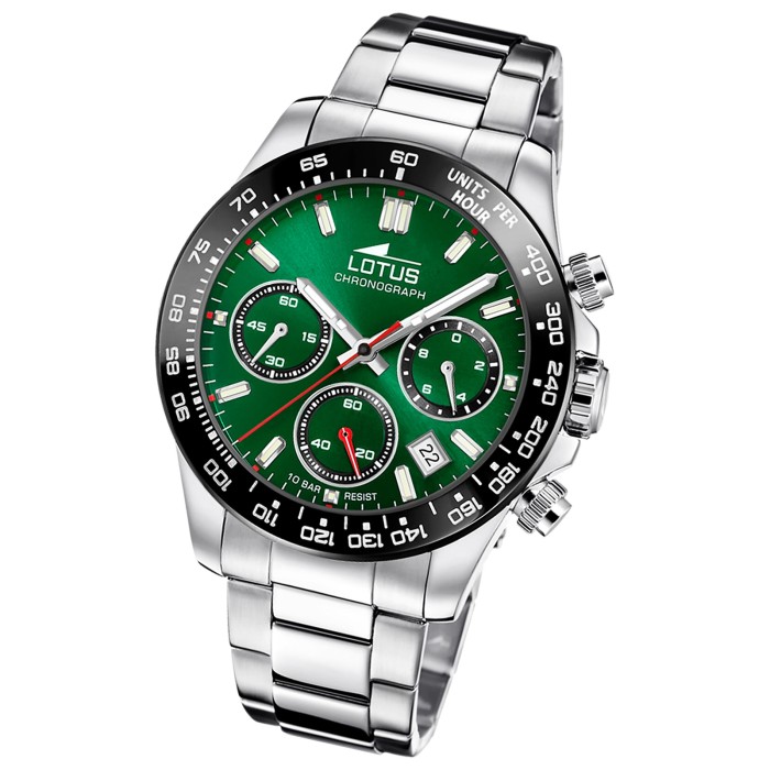 Diese einzigartige Uhr für Herren aus der aktuellen Lotus Classic Kollektion garantiert hohen Tragekomfort durch das hochwertige Edelstahl-Armband in silber. Der Chronograph und präzisem Armbanduhr ist ein zuverlässiger Begleiter in Alltag und Freizeit.Die Markenuhren der spanischen Uhrenmarke Lotus sind bekannt für ihre hochwertige Fertigung und ihr elegantes Design. Sie verbinden frisches Design mit traditioneller Uhrmacherkunst. Lotus Uhren sind ein tolles Accessoire für Uhrenliebhaber weltweit.