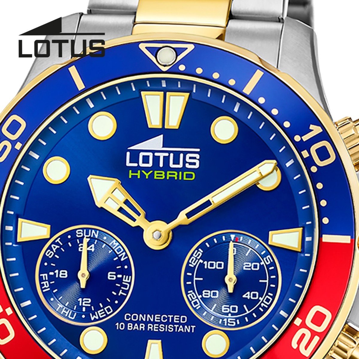 Die Lotus Uhr mit einem Hybrid-Uhrwerk zeichnet sich durch ihre herausragende Qualität und Langlebigkeit aus. Die goldenen Absetzungen lassen die Uhr sehr luxuriös und elegant wirken.- Zusatzinformation