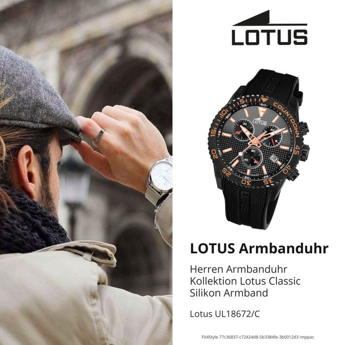 - Schlüsselworte: Herrenuhren, Chronographen, Quarzuhren, Kunststoff, Lotus, Armbanduhren