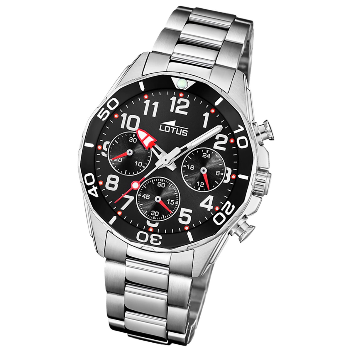 Diese einzigartige Uhr für Jugend, Kinder aus der aktuellen Lotus Classic Kollektion garantiert hohen Tragekomfort durch das hochwertige Edelstahl-Armband in silber. Der Chronograph und präzisem Armbanduhr ist ein zuverlässiger Begleiter in Alltag und Freizeit.Die Markenuhren der spanischen Uhrenmarke Lotus sind bekannt für ihre hochwertige Fertigung und ihr elegantes Design. Sie verbinden frisches Design mit traditioneller Uhrmacherkunst. Lotus Uhren sind ein tolles Accessoire für Uhrenliebhaber weltweit.