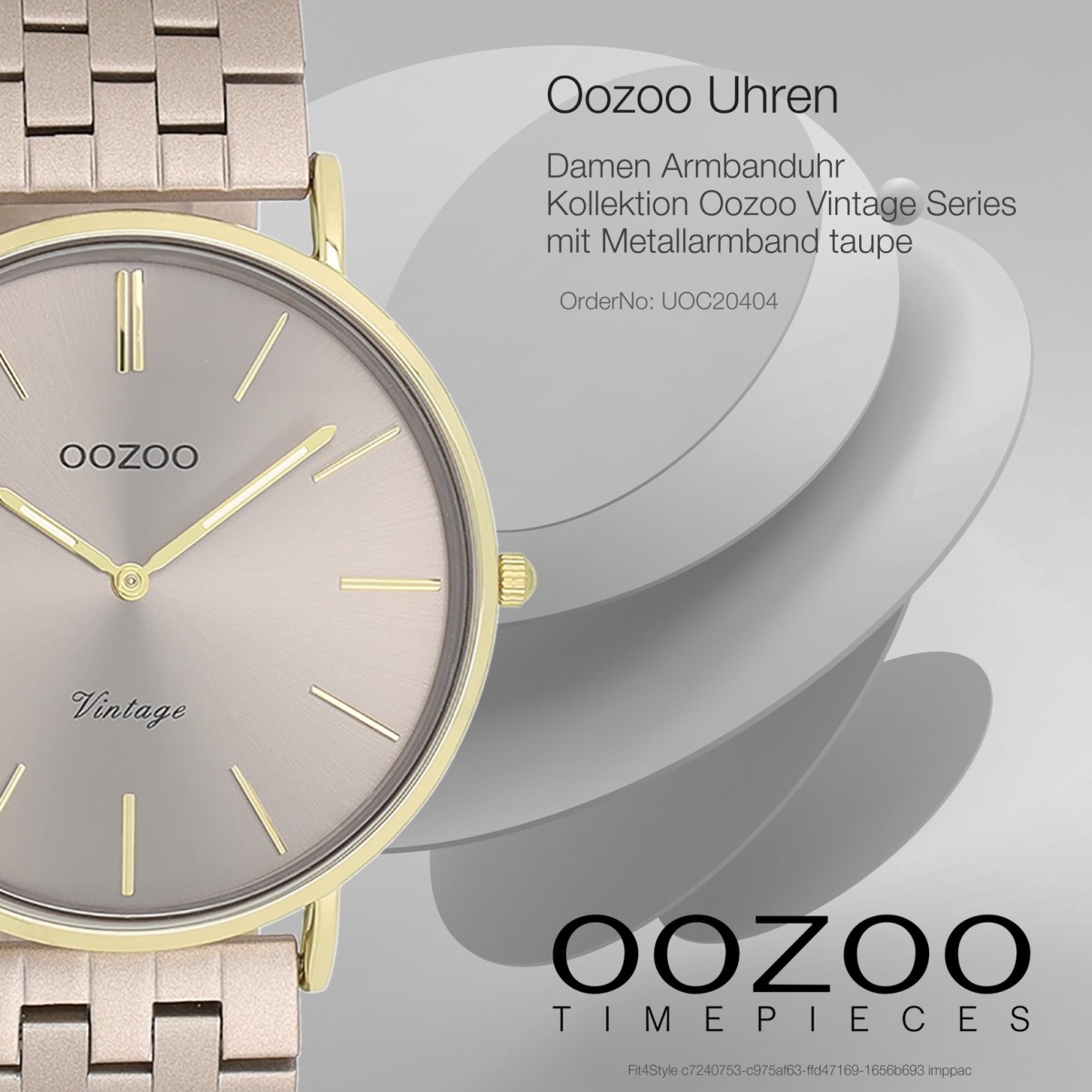 Die elegante Uhr für Damen aus der exklusiven Oozoo OOZOO Vintage -Kollektion hat ein hochwertiges Metall-Armband in taupe und braun. Das Gehäuse der Uhr ist groß (ca. 40mm). Das analoge Uhrwerk und das Uhrenglas aus Mineralglas machen diese Armbanduhr zu einem schönen und modischen Accessoire.- besondere Eigenschaften