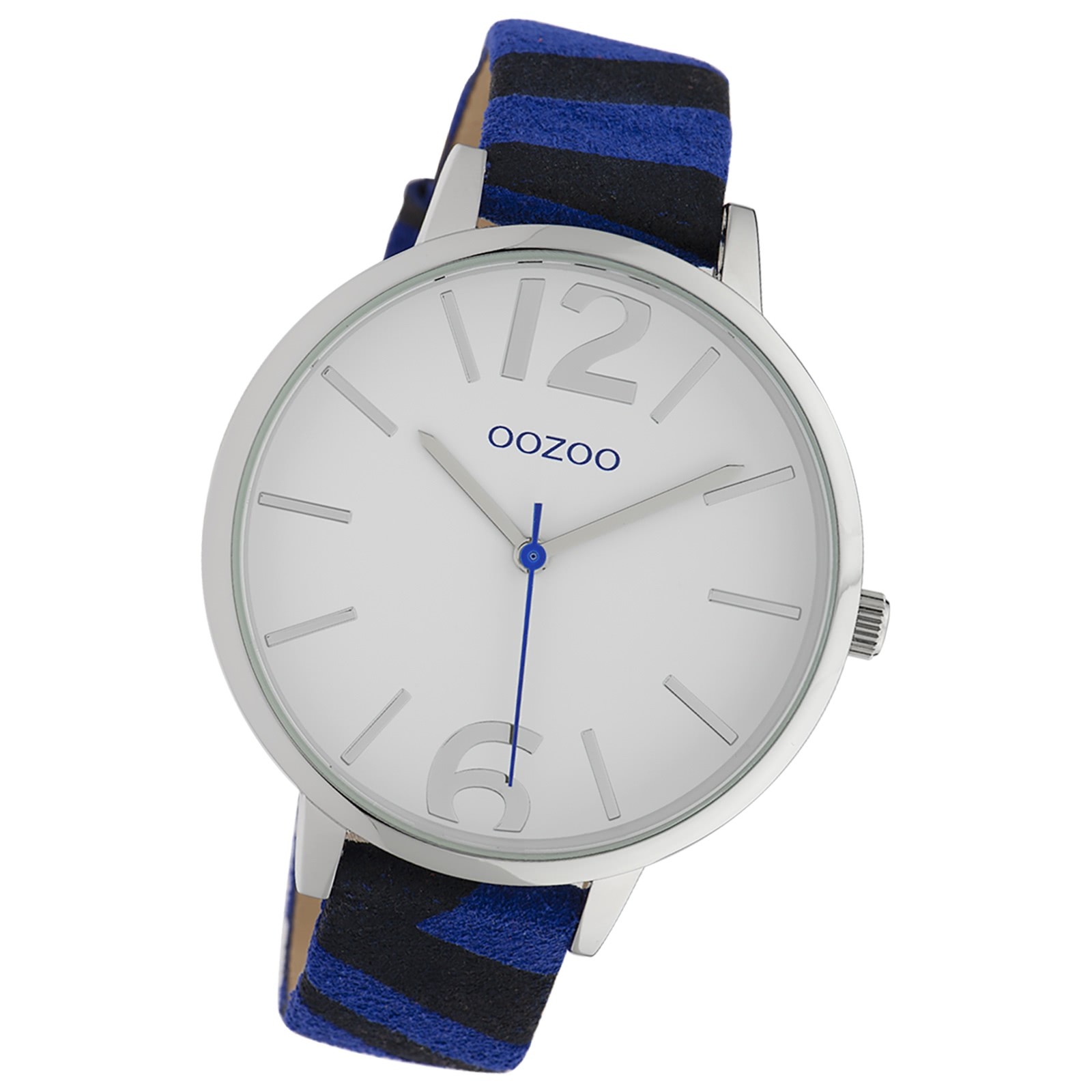 Diese Fashion Uhr für Damen aus der exklusiven Oozoo Oozoo Timepieces-Kollektion verfügt über ein hochwertiges Leder-Armband in blau und schwarz. Das Gehäuse der Uhr ist groß (ca. 43mm). Das analoge Uhrwerk und das Uhrenglas aus Mineralglas machen diese Armbanduhr zu einem hochwertigen und modischen Begleiter.- besondere Eigenschaften