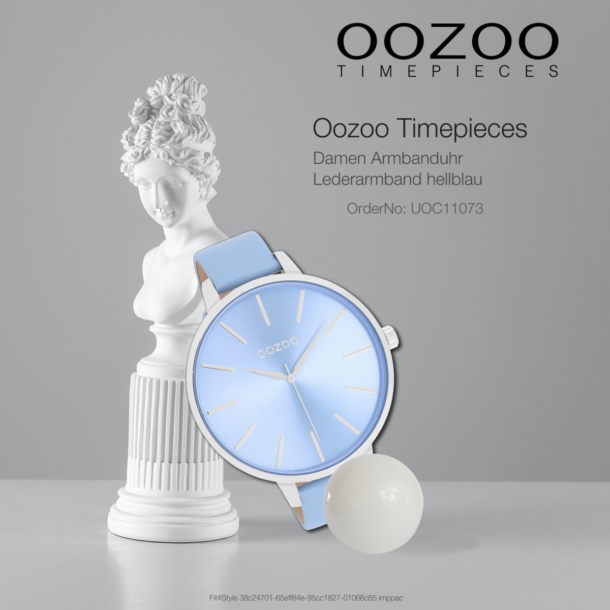 Diese Fashion Uhr für Damen aus der exklusiven Oozoo Oozoo Timepieces-Kollektion verfügt über ein hochwertiges Leder-Armband in hellblau. Das Gehäuse der Uhr ist extra groß (ca. 48mm). Das analoge Uhrwerk und das Uhrenglas aus Mineralglas machen diese Armbanduhr zu einem hochwertigen und modischen Begleiter.- besondere Eigenschaften