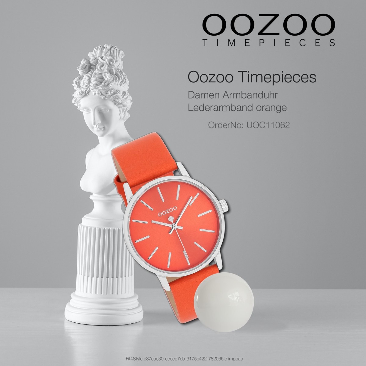 Diese Fashion Uhr für Damen aus der exklusiven Oozoo Oozoo Timepieces-Kollektion verfügt über ein hochwertiges Leder-Armband in orange . Das Gehäuse der Uhr ist mittel (ca. 36mm). Das analoge Uhrwerk und das Uhrenglas aus Mineralglas machen diese Armbanduhr zu einem hochwertigen und modischen Begleiter.- besondere Eigenschaften