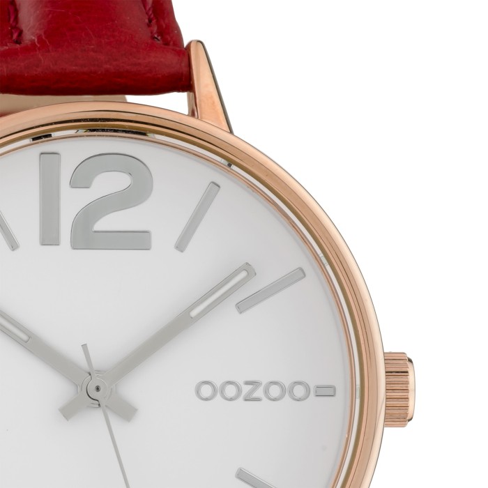 Diese Fashion Uhr für Damen aus der exklusiven Oozoo Timepieces-Kollektion verfügt über ein hochwertiges Leder-Armband in rot. Das Gehäuse der Uhr ist groß (ca. 42mm). Das analoge Uhrwerk und das Uhrenglas aus Mineralglas machen diese Armbanduhr zu einem hochwertigen und modischen Begleiter.Die Vintage Kollektion von Oozoo besticht durch die schlichten aber dennoch besonderen Designs. Dezente Farben und Ziffernblätter ohne viel Schnickschnack bilden die Grundlage dieser Uhrenmodelle.