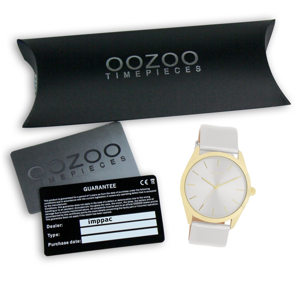 Diese Fashion Uhr für Damen aus der exklusiven Oozoo Oozoo Timepieces-Kollektion verfügt über ein hochwertiges Leder -Armband in silber. Das Gehäuse der Uhr ist groß (ca. 40mm). Das analoge Uhrwerk und das Uhrenglas aus Mineralglas machen diese Armbanduhr zu einem hochwertigen und modischen Begleiter.- besondere Eigenschaften