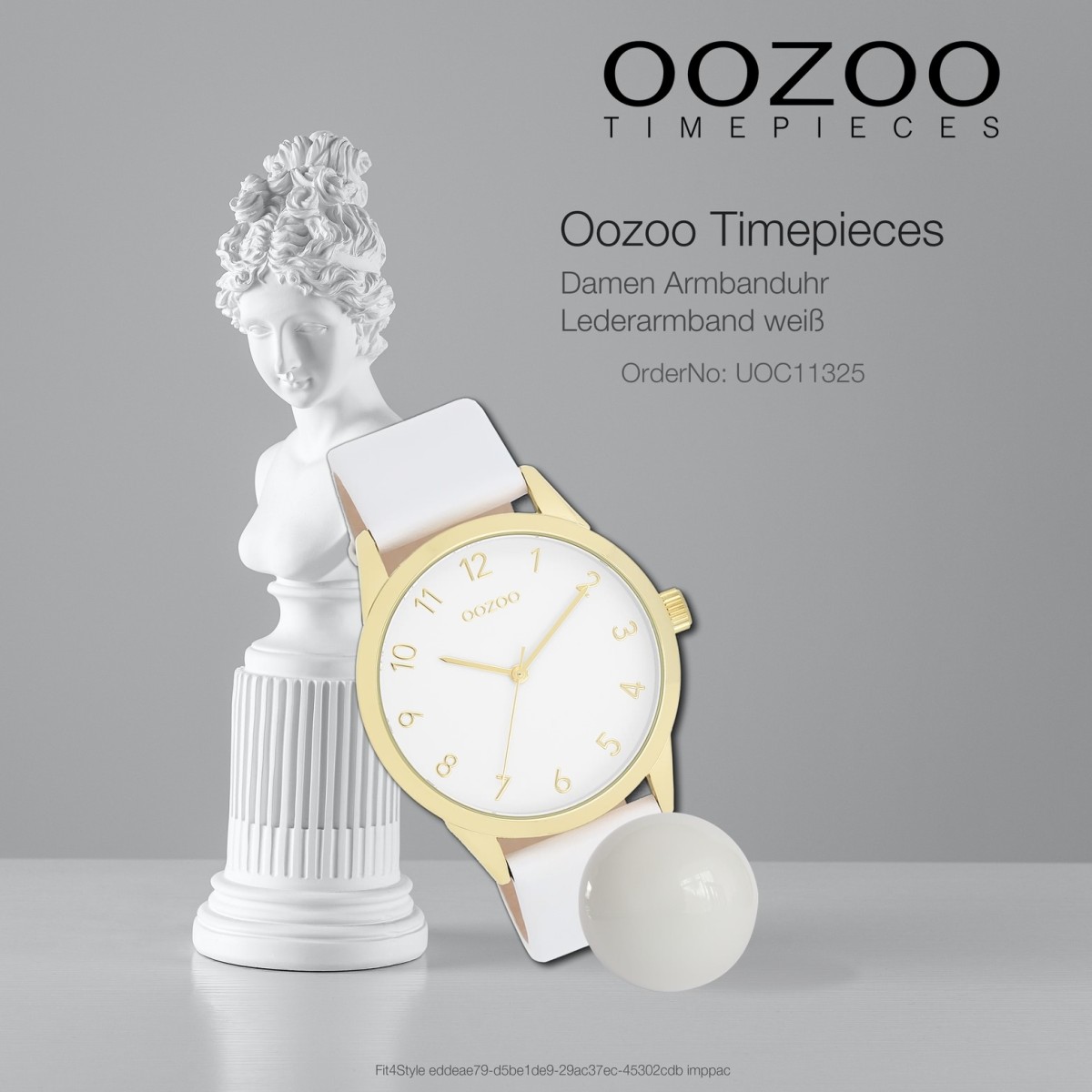 Diese Fashion Uhr für Damen aus der exklusiven Oozoo Oozoo Timepieces-Kollektion verfügt über ein hochwertiges Leder -Armband in weiß. Das Gehäuse der Uhr ist groß (ca. 40mm). Das analoge Uhrwerk und das Uhrenglas aus Mineralglas machen diese Armbanduhr zu einem hochwertigen und modischen Begleiter.- besondere Eigenschaften