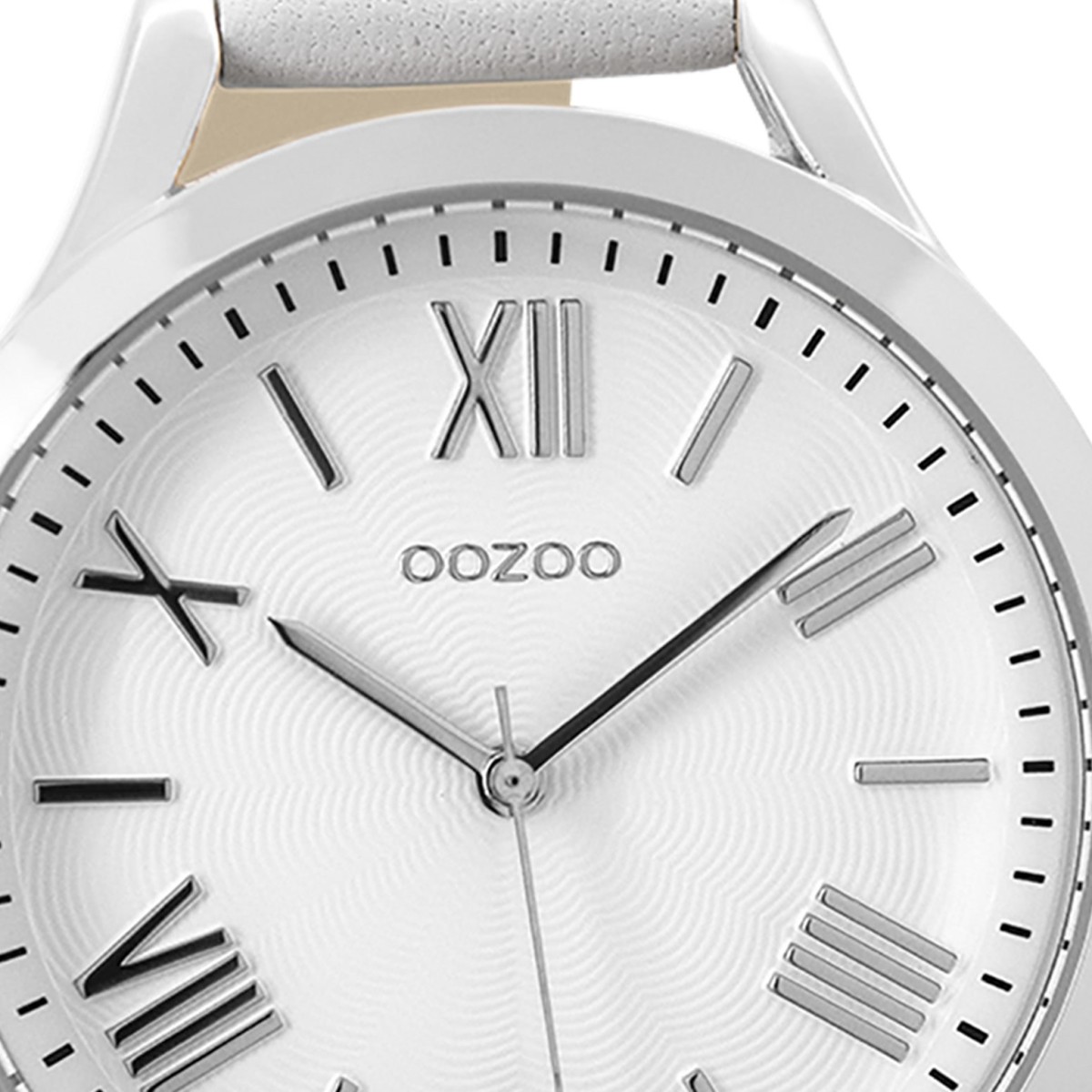 Diese Casual Uhr für Damen aus der exklusiven Oozoo Oozoo Timepieces-Kollektion verfügt über ein hochwertiges Leder-Armband in weiß. Das Gehäuse der Uhr ist groß (ca. 42mm). Das analoge Uhrwerk und das Uhrenglas aus Mineralglas machen diese Armbanduhr zu einem hochwertigen und modischen Begleiter.- besondere Eigenschaften