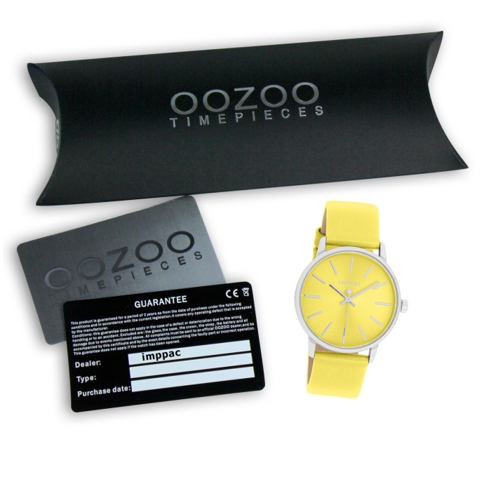 Die Casual Uhr für Damen aus der exklusiven Oozoo Timepieces-Kollektion hat ein hochwertiges Leder-Armband in gelb. Das Gehäuse der Uhr ist mittel (ca. 36mm). Das analoge Uhrwerk und das Uhrenglas aus Mineralglas machen diese Armbanduhr zu einem schönen und modischen Accessoire.- besondere Eigenschaften